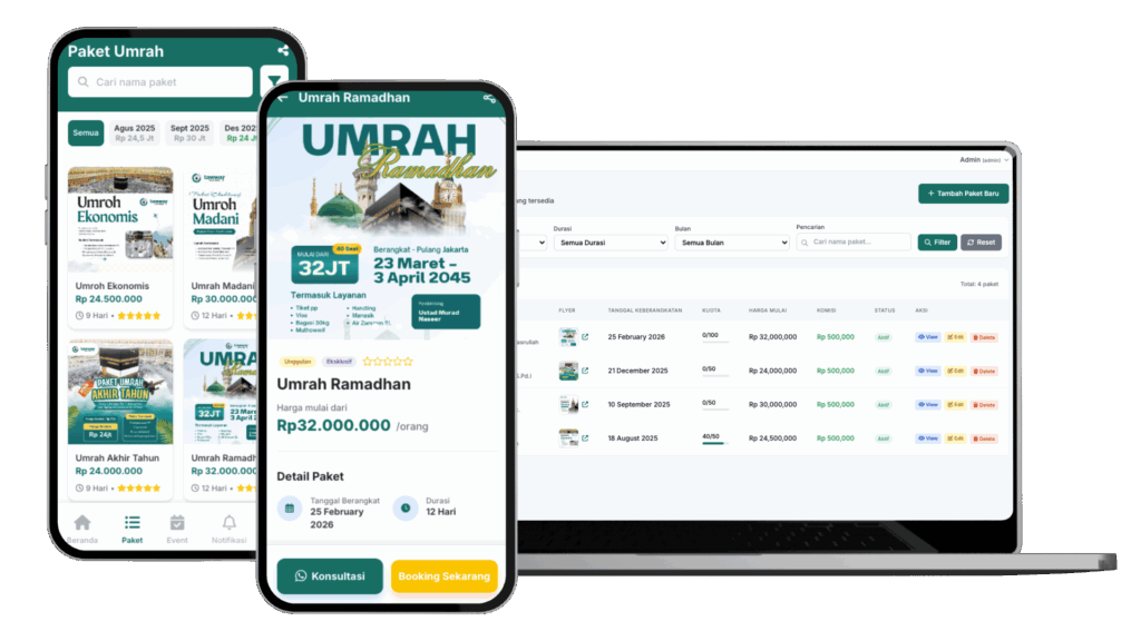 Platform pemasaran travel umroh & haji berbasis affiliate + funnel marketing, dengan sistem event management dan komisi cerdas.